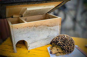 Kinder bauen Igelhäuser