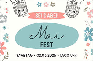 MCV-Maifest am 2. MaiAm Samstag, dem 2. Mai 2026, laden Mittelbuchens Carnevalisten ab 17.00 Uhr ein zum Maifest am Heinrich-Fischer-Haus. Es gibt gegrillte Würstchen, Maibowle, Aperol Spritz, Mispelchen und vieles mehr. Der MCV freut sich auf eine zünftige Party mit vielen gutgelaunten Gästen »» Bericht