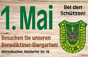 Der 1.Mai bei den SchützenDie Gaststätte „Schützenhaus“ lädt für den 1. Mai 2026 zu einem zünftigen Mai-Fest ein. Ab 10.00 Uhr gibt es Bier frisch vom Fass, herzhafte Speisen und vieles mehr. Ab 13.30 Uhr steht dann Live-Musik im Stil der Oberkrainer Musikanten mit den „Hopfenjägern“ auf dem Programm. »» Bericht