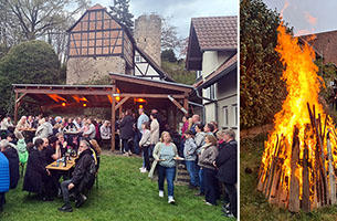 Große Resonanz auf OsterfeuerDer Gewerbeverein Mittelbuchen hatte in Kooperation mit der evangelischen Kirchengemeinde zum Osterfeuer in den Pfarrgarten eingeladen und die Bürger nahmen das dankbar an. Rund 300 Besucher füllten das idyllische Areal restlos und erfreuten sich am gelungenen Event. »» Bericht